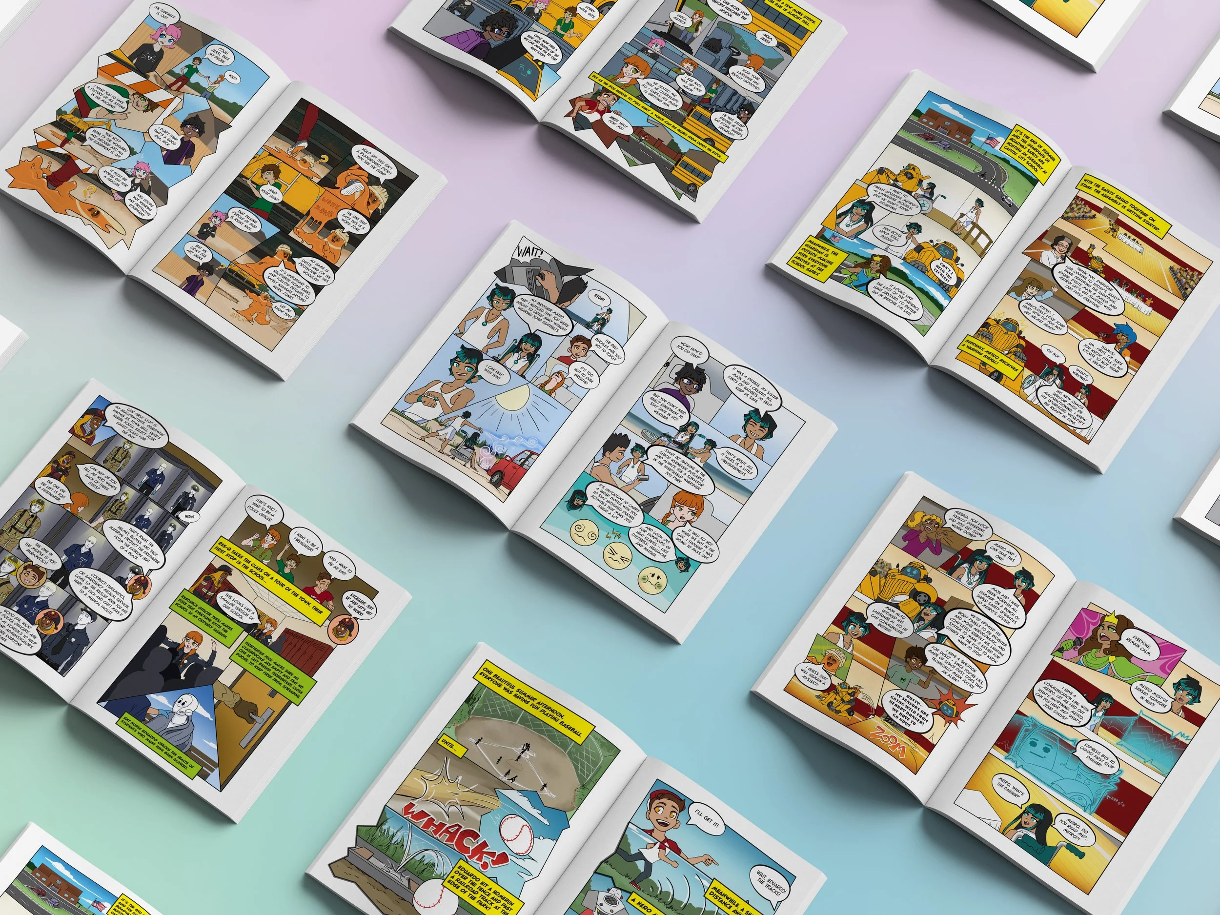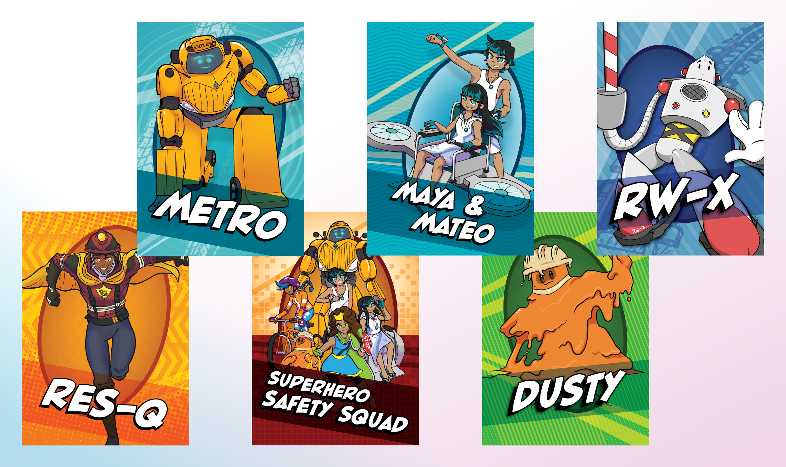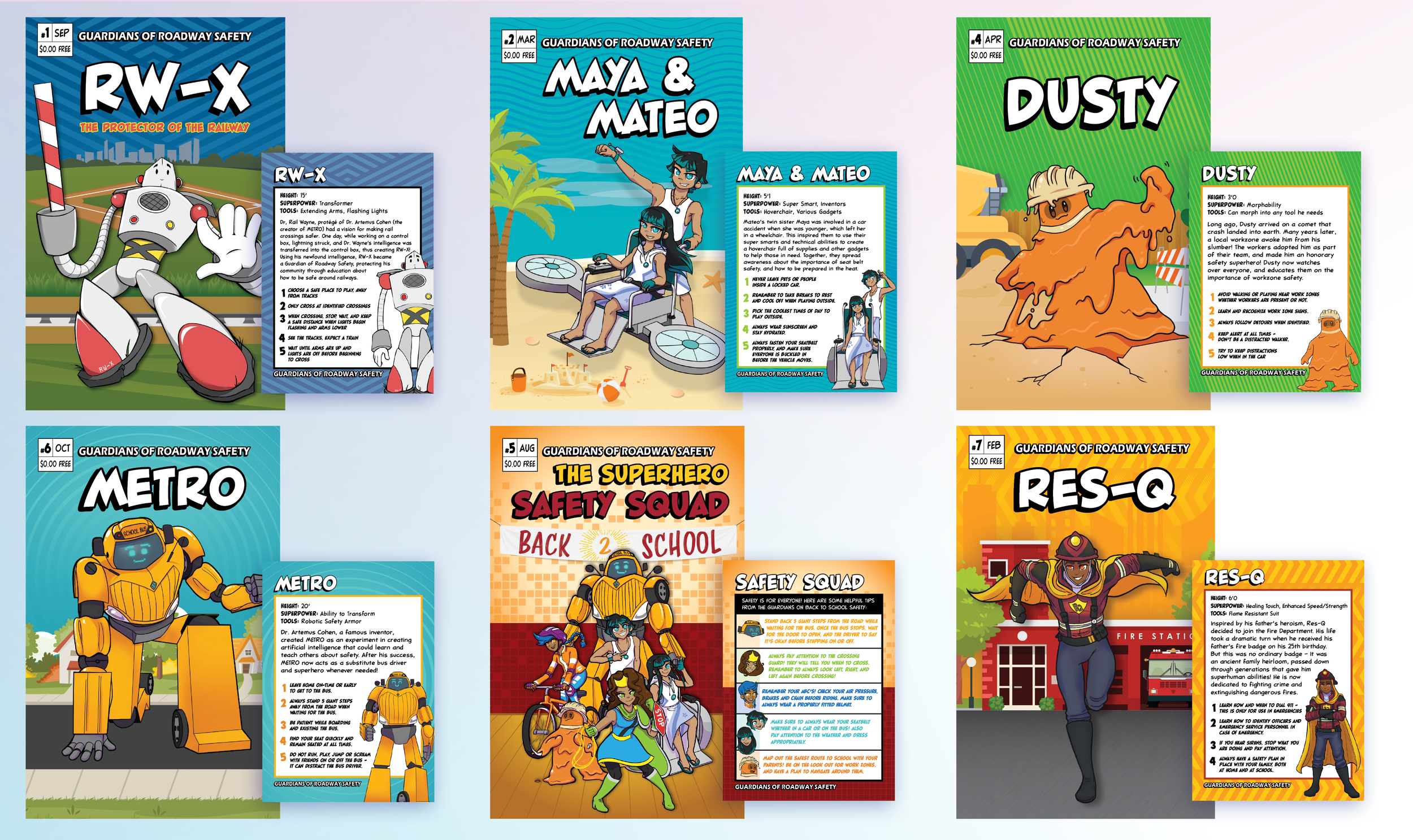 Each book included information pertaining to various roadway safety topics, activities such as crosswords or coloring pages, and a collector card that gives information about each hero with recapped safety tips.