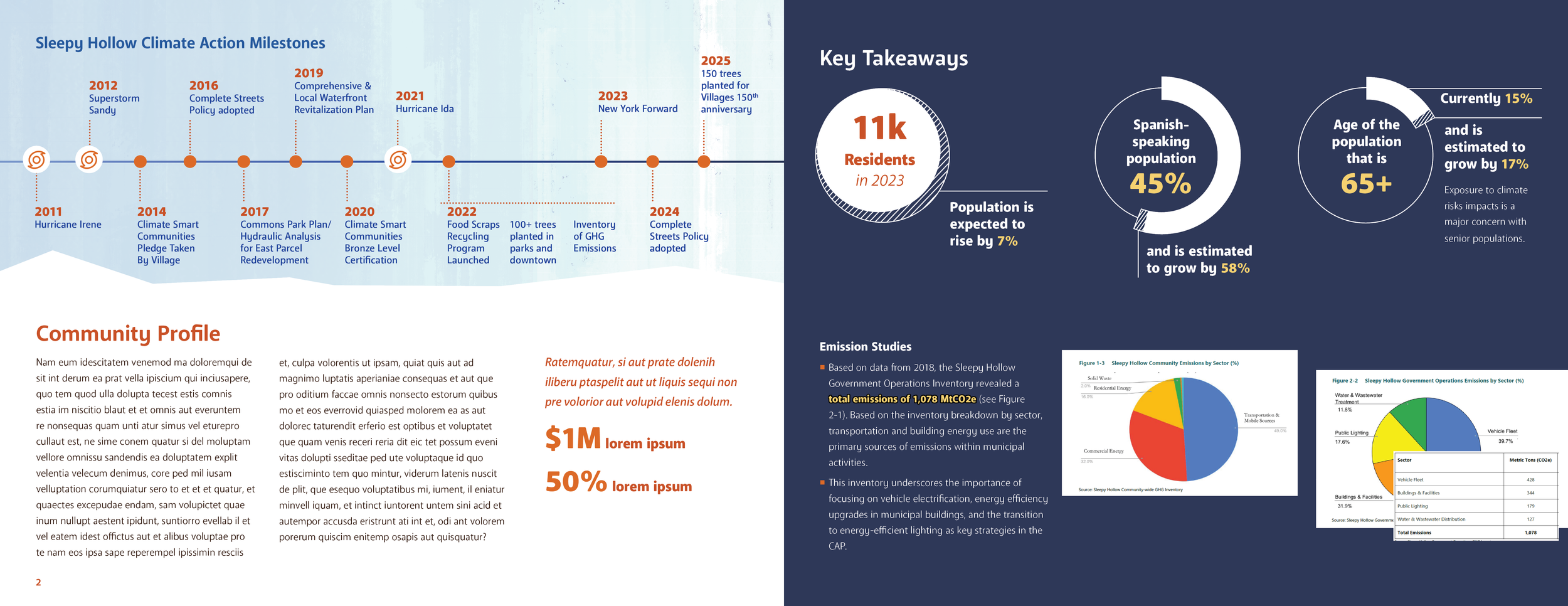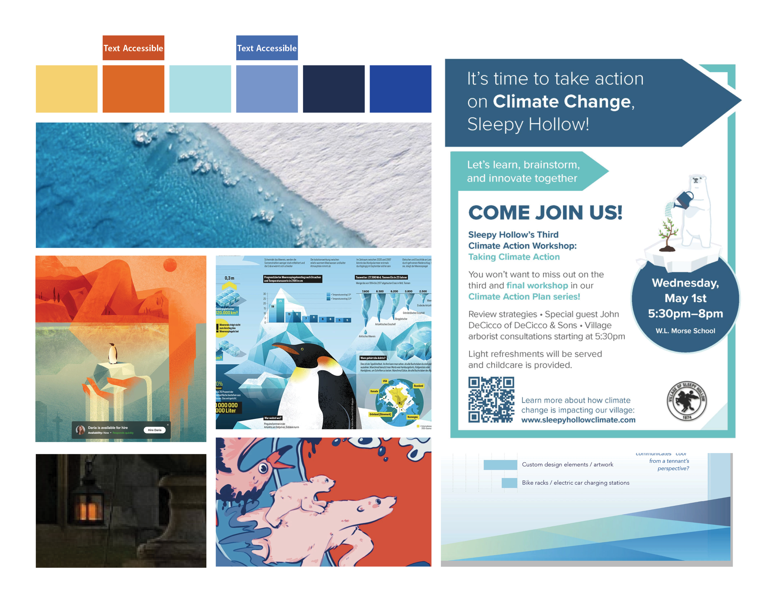 Sleepy Hollow Climate Action Plan is an community outreach project at VHB. I had assisted with the graphics within the project to amplify under tight deadlines and small budgets to provide the necessary communication to the people of the Village of Sleepy Hollow. Considering this project started back in 2023, I wanted to explore rebranding this project on my own personal time to see how far I have come and to challenge myself as a designer.